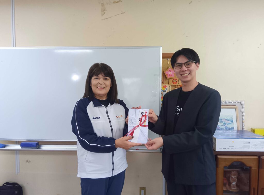 贈呈式には、児童園を代表して数名の子ども達が参加してくれたのですが、喜んで受け取ってくださいました。
